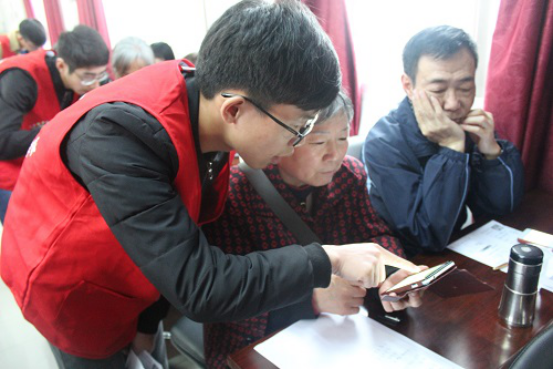 由于当天突然下起大雨,志愿者们用了近两个小时到达该社区。当志愿者(们)来到活动室时,社区里的爷爷奶奶已经在活动室中等待志愿者们。在热烈欢迎志愿者来到后,微信教学正式开始。课堂上,黄鑫同学一边用PPT演示微信使用步骤,一边仔细地向提问的老人耐心讲解。PPT讲完后,志愿者们便手把手的教老人们实践,耐心回答他们的各种问题。看到一个个朝气蓬勃的志愿者们,老人们学习热情很是高昂。不到一个小时的时间,课堂便结束了。这次活动中,我们学会了很多,希望同学们下次能够再来我们社区,教我们更多的东西,例如支付宝和滴滴打车那样的东西。”一位奶奶兴奋地对志愿者说。