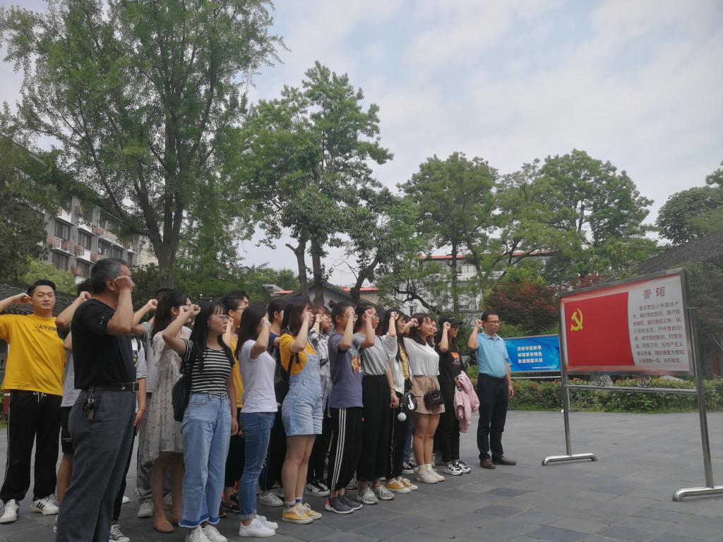 在农讲所里,学工办主任刘兴权老师带领全体党员一起重温入党誓词。全体党员举起右拳,以坚定有力的宣誓声,表达不忘初心、牢记使命的信念和决心。