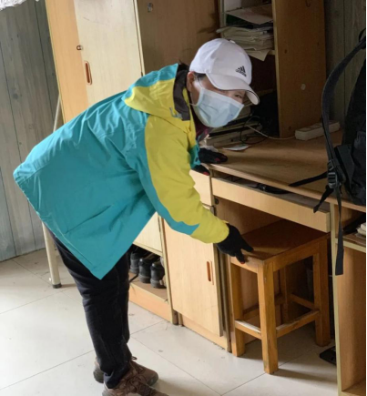 图为王相如老师在员工宿舍整理员工物品