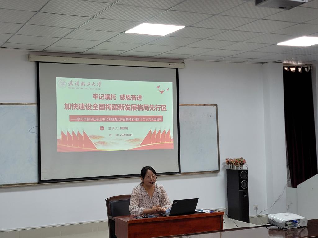 为进一步学习贯彻习近平总书记考察湖北重要讲话精神,推动湖北省第十二次党代会精神在英国上市公司官网365落实落地,9月8日下午,英国上市公司官网365举行专题宣讲报告会,马克思主义公司侯德娟博士作专题辅导。会议由党委书记孟三爱主持。