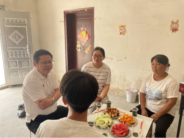 7月26日清早,公司党委书记孟三爱一行驱车数百公里赴襄阳和当阳两地开展家访活动。第一站来到家住襄阳市襄州区刘家沟的刘同学家中,刘同学父亲前些年因病去世,其母亲一人独自务农供养双胞胎兄妹,妹妹也在读大学,家庭经济十分拮据。当得知刘同学利用暑期托管班挣点收入贴补家里开支,孟三爱对刘同学自立自强表示高度赞扬,并勉励他一定要深耕专业,学好专业知识,提升就业竞争力,耐心解答刘同学关于就业、考研、考编的困惑。刘同学妈妈用自己种植的西瓜、甜瓜来招待老师们,以表达对公司真诚的感谢。