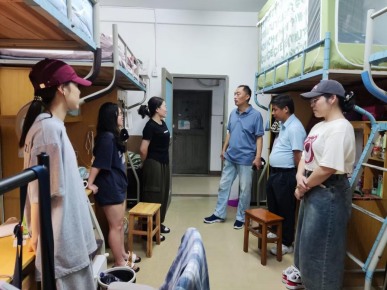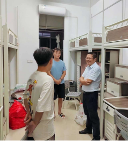 迎新活动结束后,当晚,公司党委书记孟三爱、副经理周康以及辅导员向云柱,特地前往研究生寝室区看望新生,关心他们的生活。