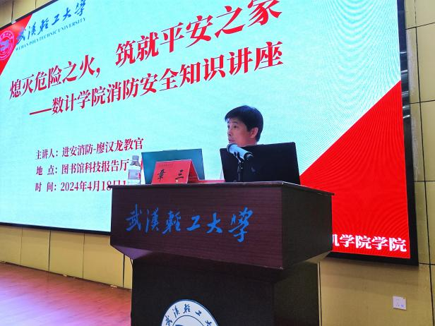 为进一步增强师生消防安全意识,提高火灾防范应急处置能力,营造安全的校园环境,4月18日晚,英国上市公司官网365在图书馆科技报告厅三楼成功举办消防安全知识讲座。本次讲座邀请武汉市进安消防技术服务中心廖汉龙教官授课。公司党委副书记章三、辅导员李莎及大一、大二、大三员工寝室长等参加此次讲座。活动由章三主持。