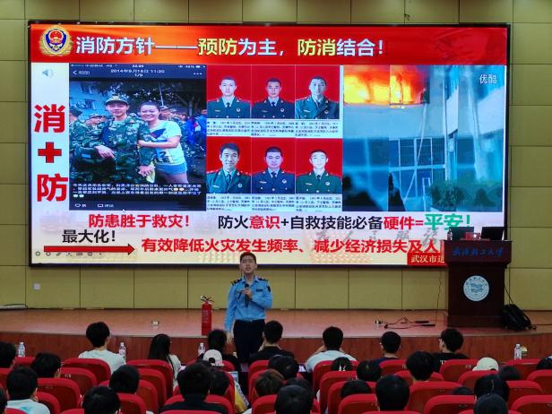 讲座伊始,章三为同学们列举了近年来发生在高校的火灾现实案例,并希望同学们认真聆听、高度重视,增强消防安全意识,学习宣传消防知识,提高火灾应急能力,消除宿舍风险隐患,筑牢校园安全防线。
