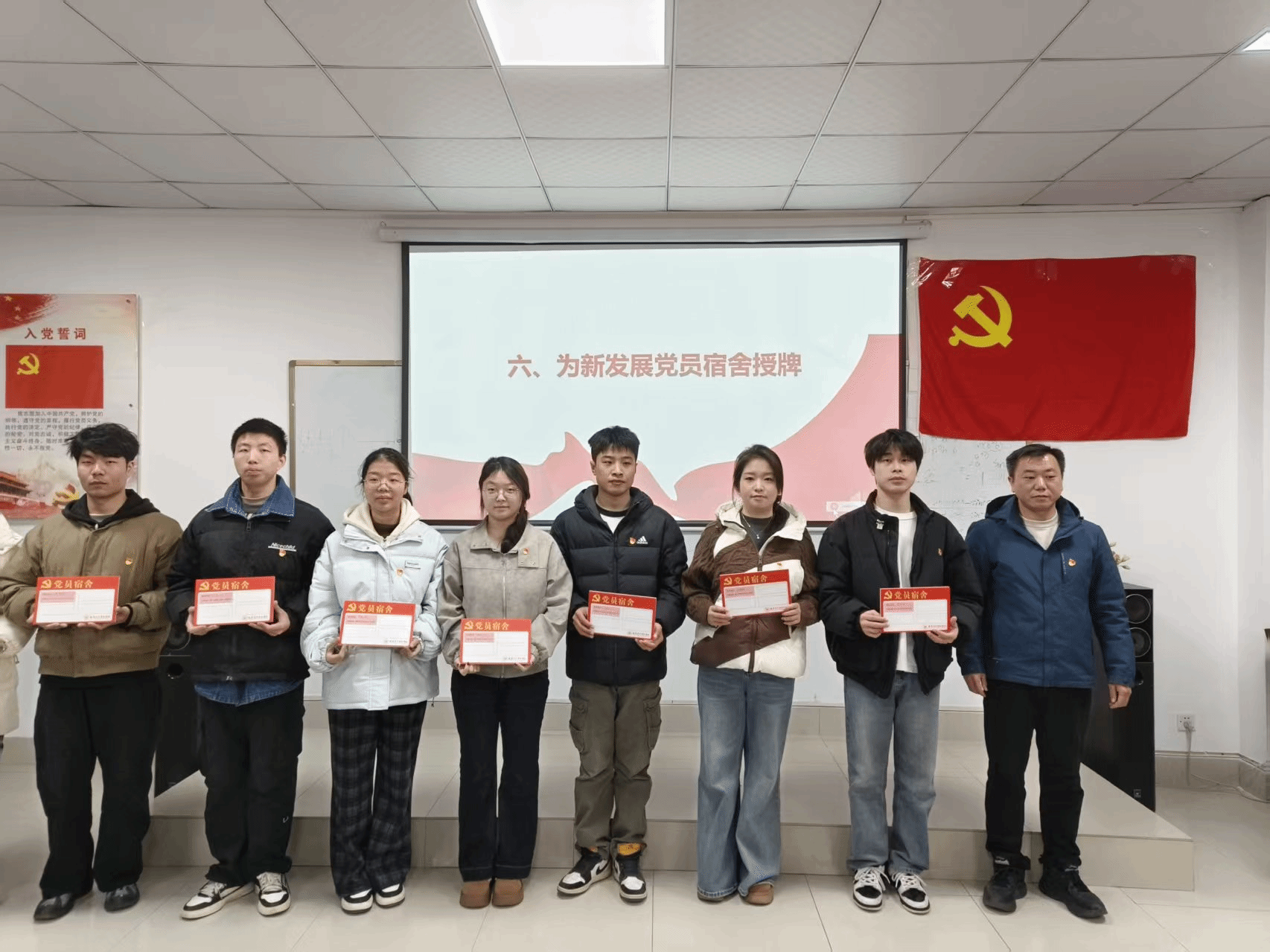 会上,李鑫书记为新发展党员宿舍授牌,并作了总结讲话。他对新加入党组织的预备党员表示热烈祝贺,并提出三点要求:一是强化政治引领,坚定理想信念,做到政治信仰不变、政治方向不偏、政治立场不移;二是锤炼过硬本领,勇担时代先锋,紧跟时代步伐,深耕专业学习,积极投身社会实践;三是严守纪律规矩,发挥先锋模范带头作用,做到心系同学、身入同学、情系同学,时时处处发挥先锋堡垒和模范带头作用。