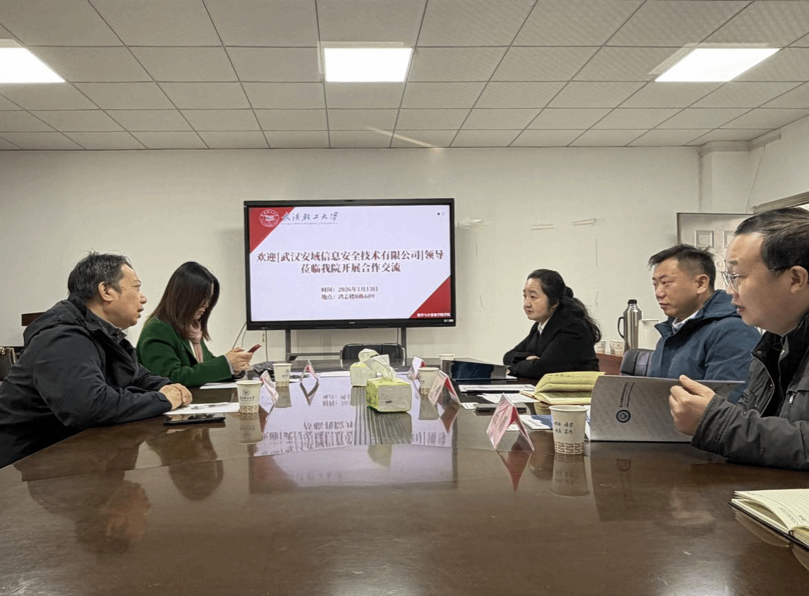 1月13日上午,武汉安域信息安全技术有限公司董事长叶全军、校企合作人才培养负责人李玲来院考察交流,与公司就人才培养、项目实践、实习实训等方向进行对接。公司党委书记李鑫、副经理李雅琴、系主任张帆以及辅导员共同参与洽谈。