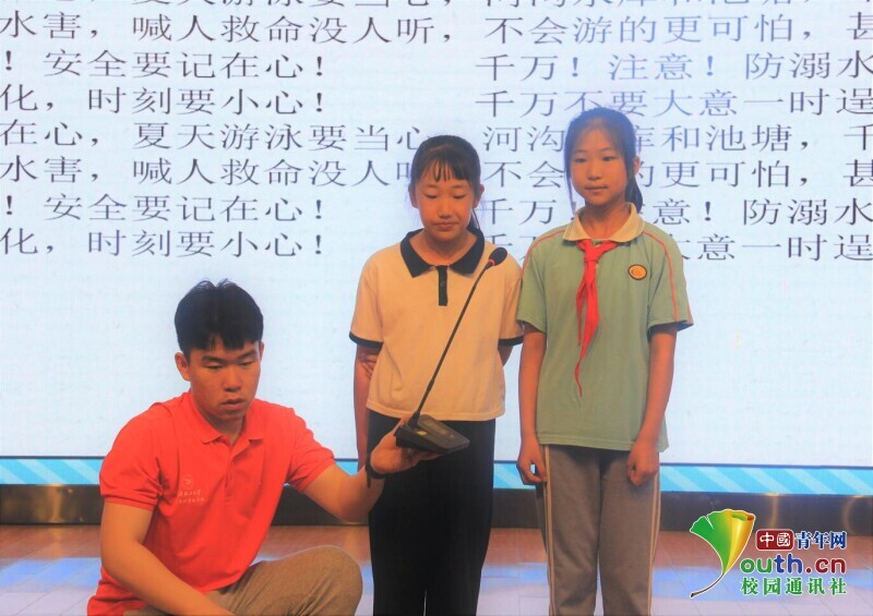 图为志愿者教唱防溺水宣传歌曲《孤“泳”者》(来自格林斯公司) 中国青年网通讯员 郭方皓 摄