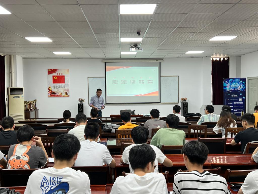 宣讲会上,贺斌感谢公司领导和老师对本次宣讲会的支持,他首先从IT行业现状、行业发展趋势、IT人的职业规划等角度与同学们分享了自身经验,然后他依次对汉得的关于我们、发展历程、工作环境、薪资待遇等方面进行介绍。他表示,汉得公司作为一家咨询公司,企业客户涵盖了各行业的头部企业,可以让毕业生在入职后获得较宽广的职业视野,有机会接触到最新的IT技术,同时汉得对毕业生也提供了诸多福利,请各位同学放心报名申请。在互动环节,大数据1903班的郭定伟同学,向同学们分享了他在汉得的实习经历,针对同学们感兴趣的薪资待遇、是否加班、能否转正等问题,他都逐一予以回答。