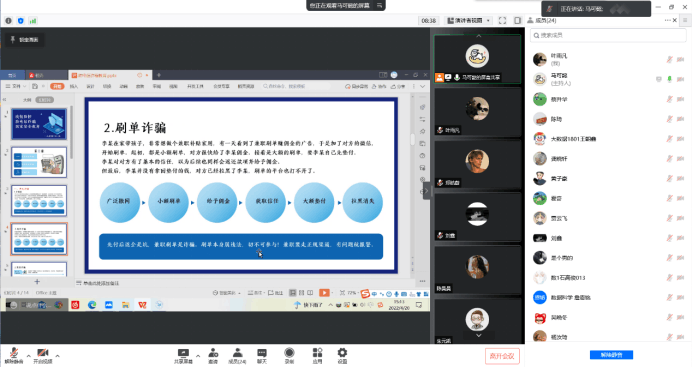 “网上有人找你谈恋爱怎么办?”“陌生链接能不能点?”“网友找你借钱可不可以借?”4月18日至4月21日,为进一步提高员工电信网络诈骗防范意识和识别能力,公司4个年级68个班,在线上举行防电信网络诈骗主题班会。
