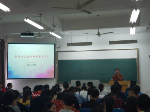 首先,吴老师进行自我介绍,讲述了自己的工作经历,她做员工工作以来发现人际关系是老员工适应环境中最容易出现问题;其次,她从身边的故事、亲密关系的理论和实验、故事原因分析、解决方法等四个方面深入浅出地开展讲座。她以曾经咨询的案例(案例的采用已经获得本人授权)入手讲解了室友关系紧张、恋爱分手的失败案例吸引同学们的关注,然后她详细讲解了依恋理论、哈佛大学著名的面无表情实验以及依附类型等,她提供了心理测试的网站建议大家去测试自己的依附类型,帮助大家来更好地认识自己。接着,吴老师讲解案例产生的原因,她从依恋类型、交流沟通、恋爱阶段等来分析了两个案例,帮助大家加深对理论的了解。最后,她从不安全依恋的人如何建立亲密关系,提高人际交往的能力和技巧两方面讲述了解决的方法。讲座后有同学咨询了人际交往存在的困惑,吴老师耐心进行了解答,鼓励同学多尝试,不断提升自己的能力。