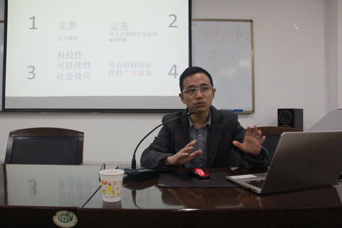 在讲座中,员工欧阳书伦向同学们分享了商业计划书的撰写技巧、政府的创业扶持政策,以及自己的创业经验等三个方面的“干货”。