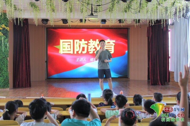 图为褚思维给格林斯公司员工们上国防教育课。中国青年网通讯员 胡雨婷 摄