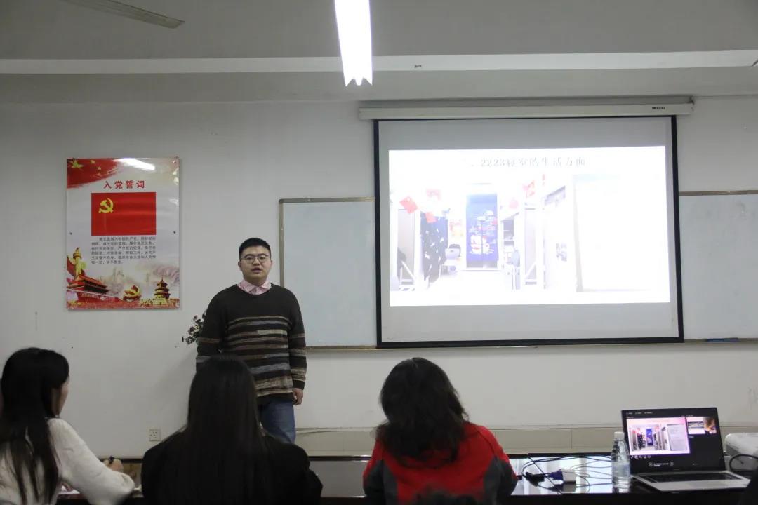 比赛现场18位寝室主讲人分别从寝室成员、室内布局、寝室文化以及寝室成员的未来展望等方面,声情并茂地向评委与观众展现寝室的风采。2223寝室主讲人梁献,以“传承红色基因”为主题,从思想、行动、学习、未来展望四个方面,讲述了“2223寝室”的寝室建设,一个床位,一面小国旗是标准,每人一句爱国语录是标配,寝室内部不仅挂有毛泽东主席的画,还拉起了“横幅”,红色氛围浓厚。1314寝室主讲人熊书桐说:“我们舍规的宗旨以和为贵,对我们来说团结有爱、相处融洽,共同建设、守护我们的小家,才是最重要的。寝室布局整体简洁温馨,每个的小小天地又各有特点,寝室之中,总是充满了各种意想不到的温暖。桌子下层,是生活与娱乐,桌子上层,就是我们的理想与未来,也希望大家能够享受生活与娱乐,实现理想与未来。8501主讲人刘晓馨说道:“再次站到寝室风采大赛的舞台,再次向大家展示我们的小家,感慨万千。经过一年的历练,四位成员已悄悄成长了许多,从相识、相知到相爱,无论学习、生活都默默陪伴着彼此,也共同见证着彼此的努力与成就。山高水长,来日方长,希望四位计算机‘秃头少女’,能够带着这份‘家’的温暖,乘风破浪,扬帆起航。”
