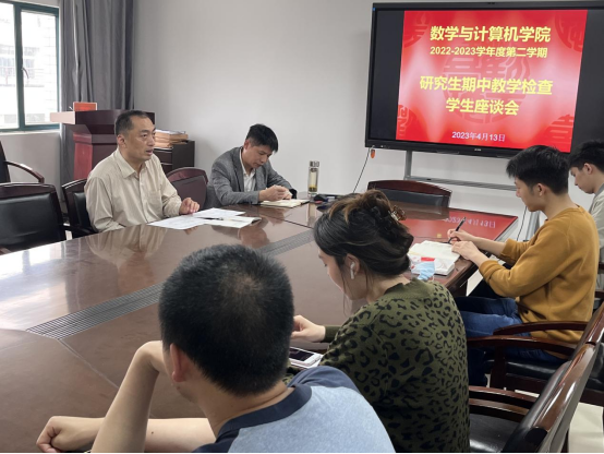 为提高研究生教学水平,深化研究生公司产品改革,4月13日下午,英国上市公司官网365在金银湖校区7609会议室举行2022-2023学年度第二学期研究生期中教学检查员工座谈会。副经理周康和2022级研究生代表参加座谈会。会议由研究生辅导员向云柱主持。