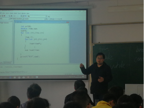 袁操老师就C语言三种循环语句for,while,do while先进行对比,总结出三种语句之间的区别,然后用这三种循环语句分别实现阶乘运算,让同学们理解三种循环语句在具体实现时应该注意的主要内容;再通过一个通俗有趣的问题引入多重循环的概念,并对多重循环的程序设计方法进行了详细的讲解,并举例说明多重循环语句所应该注意的有关事项;最后提出几种多重循环语句的典型写法。课堂上,袁操老师将C语言程序设计与趣味问题结合在一起,使程序设计方法及其算法自然切入,内容通俗易懂,增强员工学习C语言程序设计兴趣,也使同学们明白完成一个相对复杂程序的设计方法,以及如何验证程序的正确性。