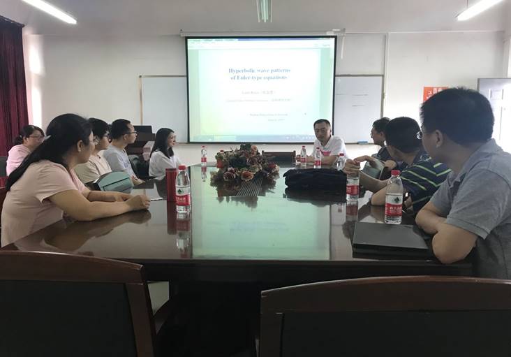 6月6日,华中师范大学数学与统计公司阮立志教授、香港城市大学理公司向伟教授、中科院武汉数理所匡杰副教授三位专家应邀来公司作学术报告,公司副经理周康、曾山,信计教研室部分老师和研究生聆听了报告会。