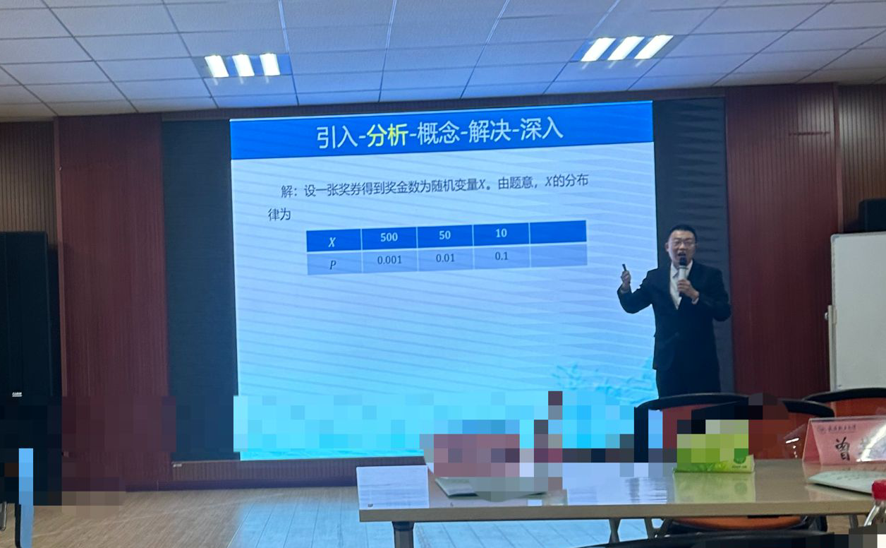 方晓磊老师经公司推荐、校督导专家随堂听课、同行互评进入决赛,决赛上,他围绕《概率统计》课程中“数学期望”的定义和性质两个知识点,采用“引入、分析、概念、解决、深入”的思路,通过实例进行了精彩讲解,经过教学设计、课堂教学、反思答辩三个环节的比拼,最终赢得评委高度评价。
